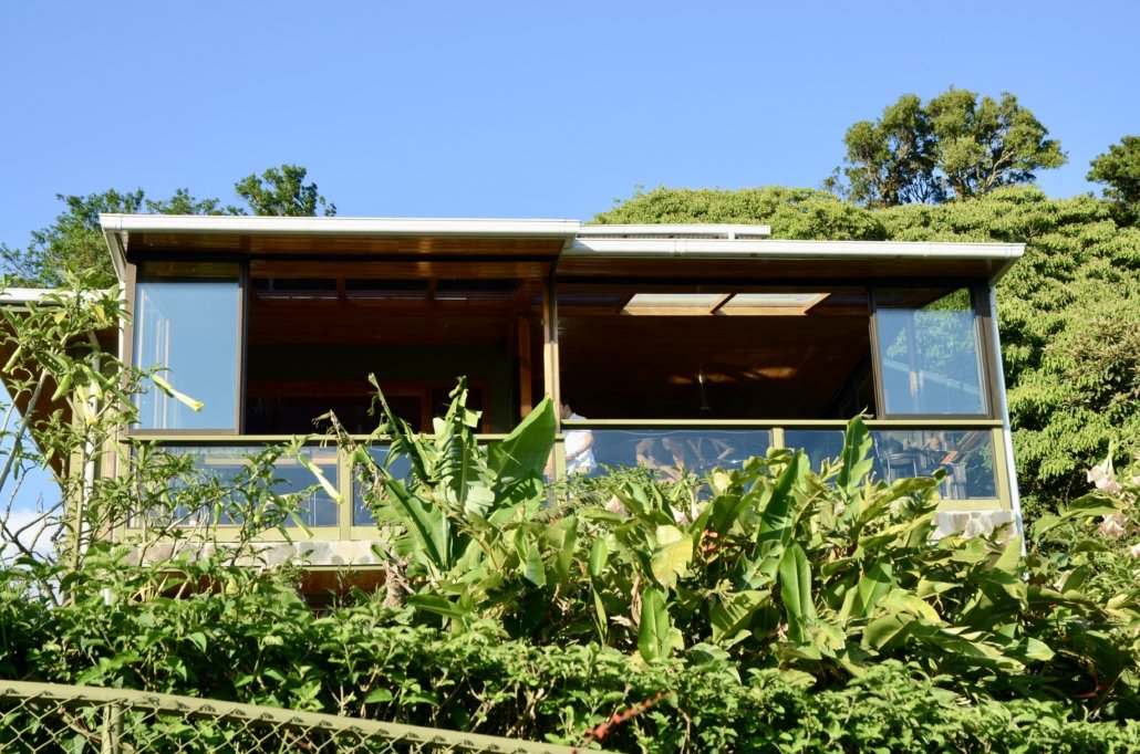 There are well-kept gardens and a trail around the vast property where you are accompanied by the owner’s dogs when making the tour. In the main house there is a guest lounge with large windows where you have sweeping views of the Gulf of Nicoya. There a delicious teatime or better a happy hour takes place, fantastic sangria or other alcoholic and non-alcoholic drinks are offered and delicious savoury and sweet snacks are served, a nice touch. Also the breakfast is served there. Jenn, the host (and owner), gives her best to satisfy their customers’ needs, be it reservations for restaurants and arrangements for tours in the Monteverde area.